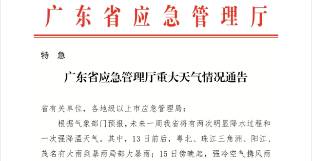 13日前后,偏南气流明显加大,并主要在粤北、珠三角和粤西地区“卸货”,雨带会逐渐东移,因此降雨范围比较大。