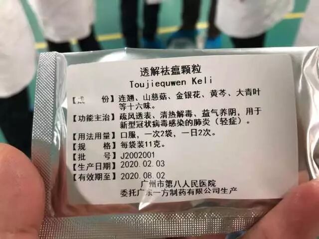 省药监局、卫健委和中医药局联合发布的这份通知指出,疫情期间,允许广东省新型冠状病毒感染的肺炎定点救治医院,根据临床需要直接调剂使用透解祛瘟颗粒,无需向省药品监督管理局提出调剂申请;非定点医院申请调剂使用透解祛瘟颗粒的,由省药品监督管理局予以优先审批。获调剂的医疗机构可直接向该制剂受托生产企业广东一方制药有限公司申请提供配送。透解祛瘟颗粒(曾用名:“肺炎1号方”颗粒)是广州市第八人民医院中医科谭行华主任中医师临床经验方。谭行华主任是广东省名中医,师从岭南温病大家广州中医药大学第一附属医院彭胜权教授,他在温病学说理论指导下,拟定治疗新型冠状病毒感染肺炎的中医治则为“清热解毒、疏风透表、益气养阴”,临床应用“肺炎1号方”治疗新型冠状病毒感染的肺炎(轻症)确诊病人50例,经1周临床观察全部患者体温恢复正常,50%患者咳嗽症状消失,52.4%咽痛症状消失,69.6%乏力症状消失,无一例患者转重症。该项目报至广东省疫情防控指挥部办公室科技攻关组后,获得高度重视,于2020年2月1日召开专家咨询会对该项目进行了评估后认为:“肺炎1号方”能够明显改善新型冠状病毒感染肺炎(轻症)的临床症状,有减少重型肺炎发生的趋势,具有较好的临床价值,拟列为广东省防控新型冠状病毒感染的肺炎疫情科技攻关应急专项。2月3日,省中医药局、省药品监督管理局组织对广州市第八人民医院“肺炎1号方”颗粒医疗机构制剂应急审批及临床应用进行联合专家论证会。经论证,基于“肺炎1号方”颗粒具有改善新型冠状病毒感染的肺炎(轻症)临床症状和可能减少重型肺炎发生趋势的疗效,同意“肺炎1号方”颗粒按照广东省医疗机构传统中药制剂提出备案申请,并纳入应急审批程序准予附条件备案。该制剂规范名称为"透解祛瘟颗粒"。![]()