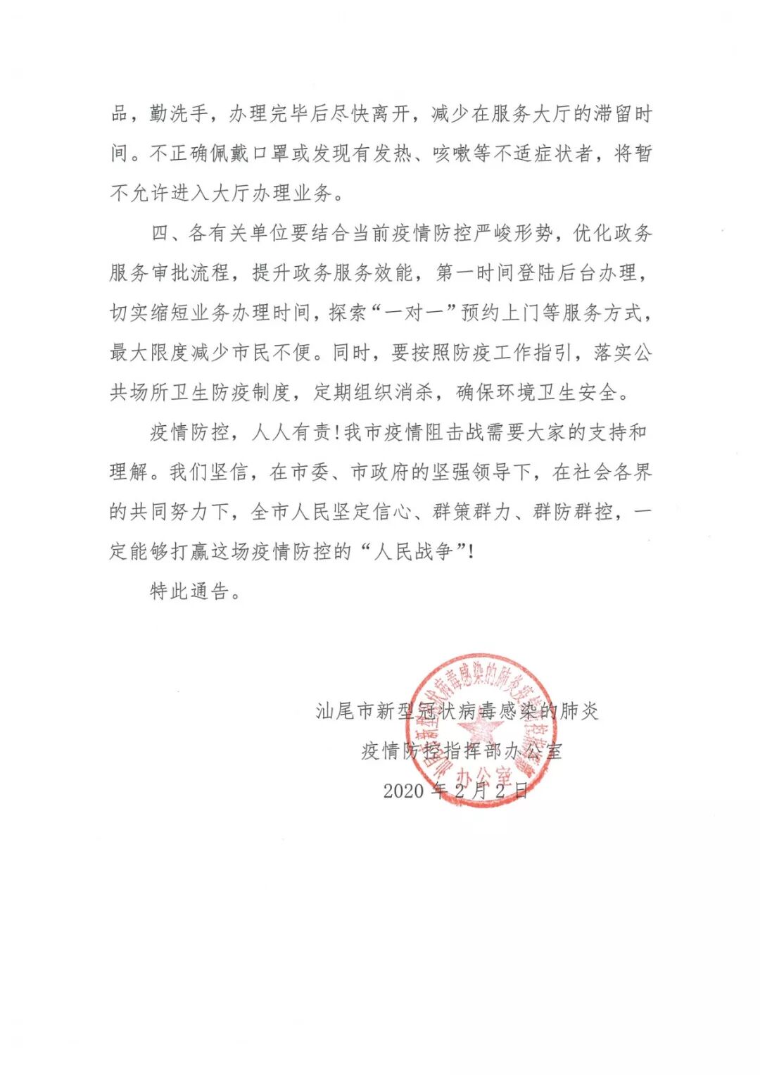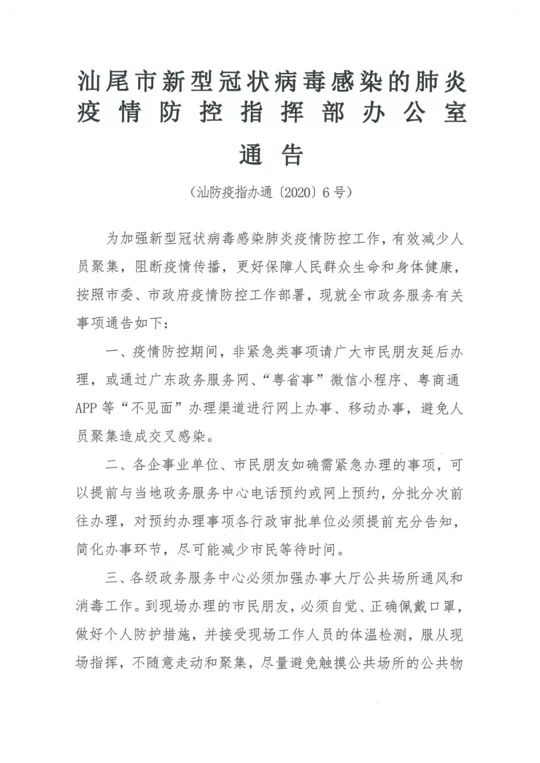 为加强新型冠状病毒感染肺炎疫情防控工作,有效减少人员聚集,阻断疫情传播,更好保障人民群众生命和身体健康,按照市委、市政府疫情防控工作部署,现就全市政务服务有关事项通告如下: