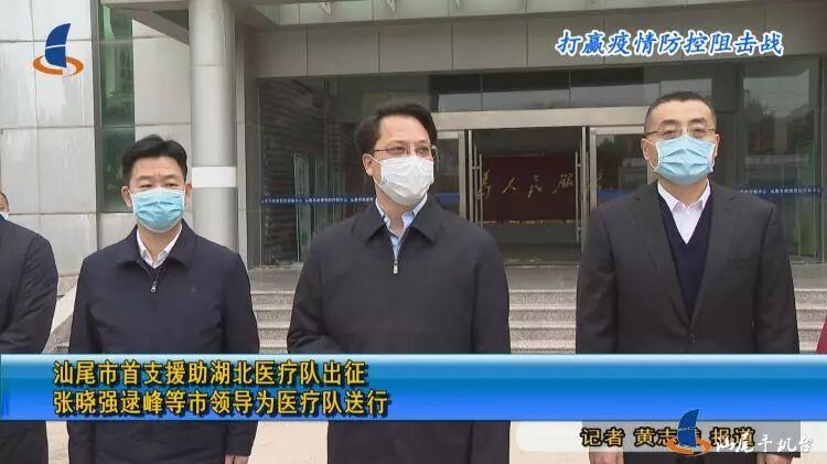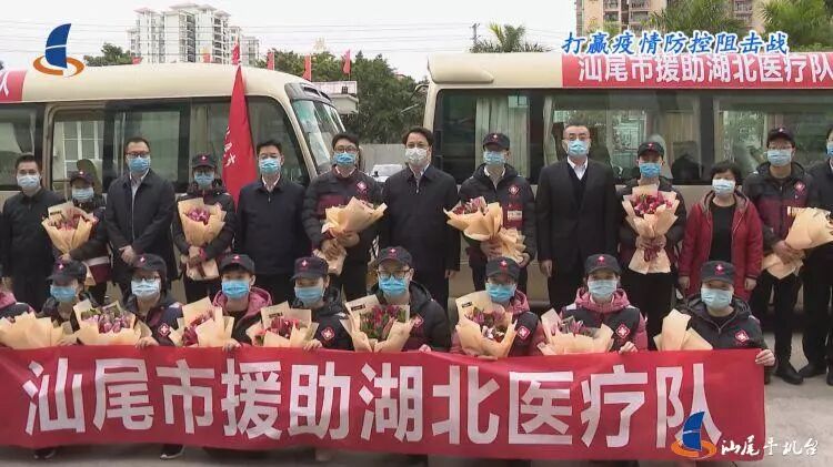 记者 高波:观众朋友,今天上午,由汕尾市多家医院的18位医护人员组成的汕尾市第一批援助湖北医疗队将会启程出发,驰援湖北,他们将承载着汕尾老区人民,无私奉献,敢为人先的精神,坚守初心担使命,勇赴湖北抗疫情,让我们共同期待他们早日完成使命,平安归来。