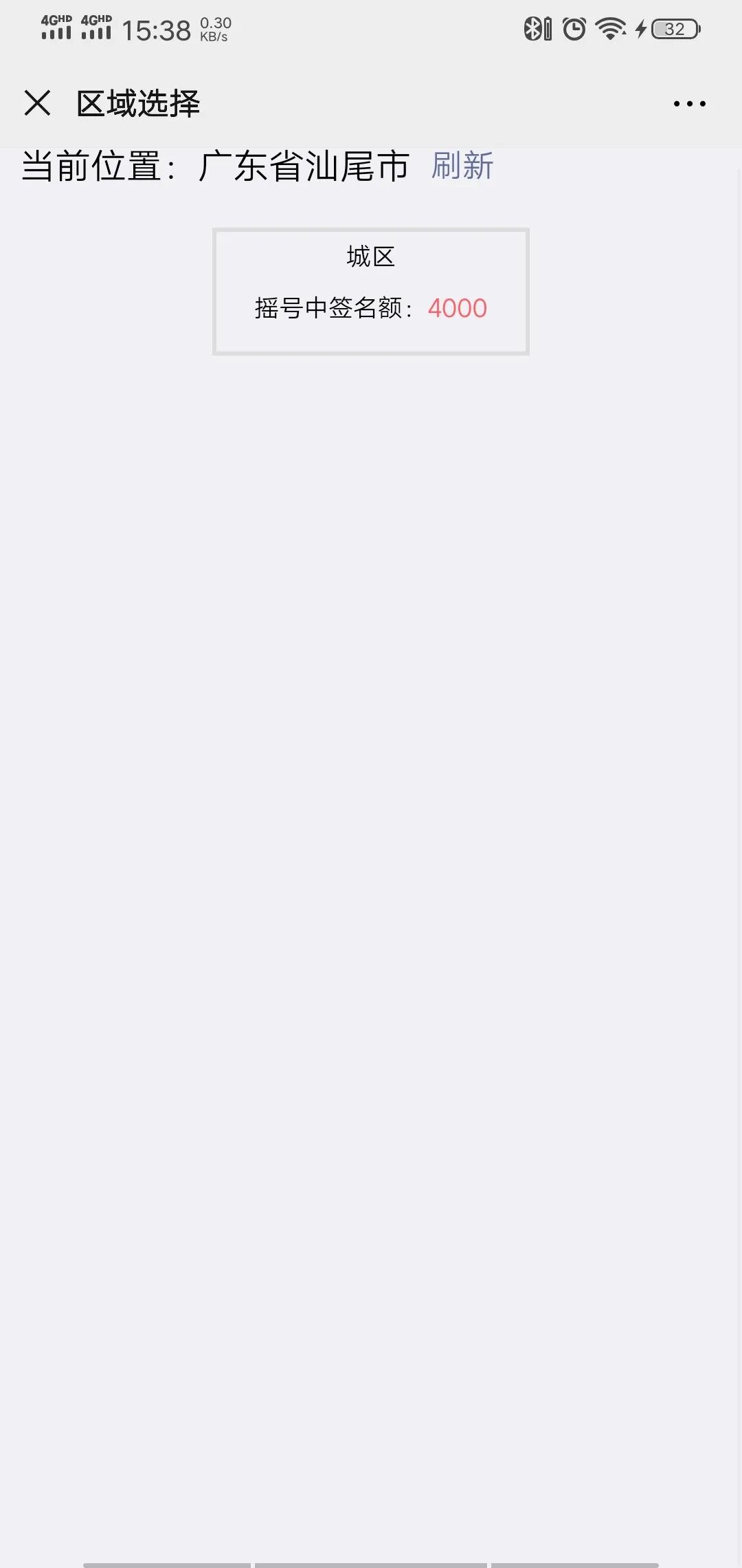 ③获取用户定位,若用户所在城市与预约开放城市一致,则可查看各区域可预约名额并进行选择;