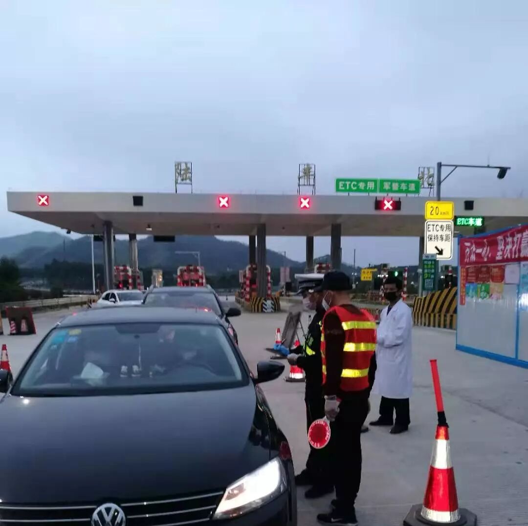 每个检查点的警务人员、医务工作者需要对过往车辆人员逐一测量体温,请选择省道、国道通行,减轻高速公路工作人员的压力,也避免造成交通拥堵!