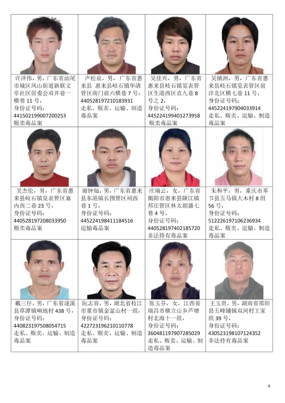 92名涉毒逃犯的通告