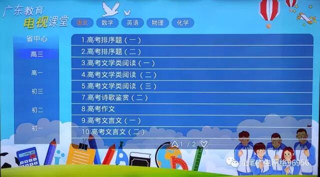1、打开电视,遥控器直接按数字键“985”或“986”,即可进入“广东教育电视课堂”节目内容。
