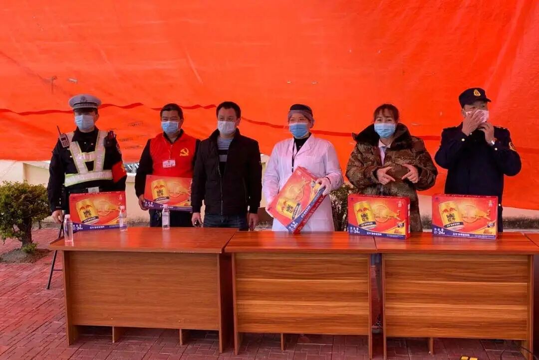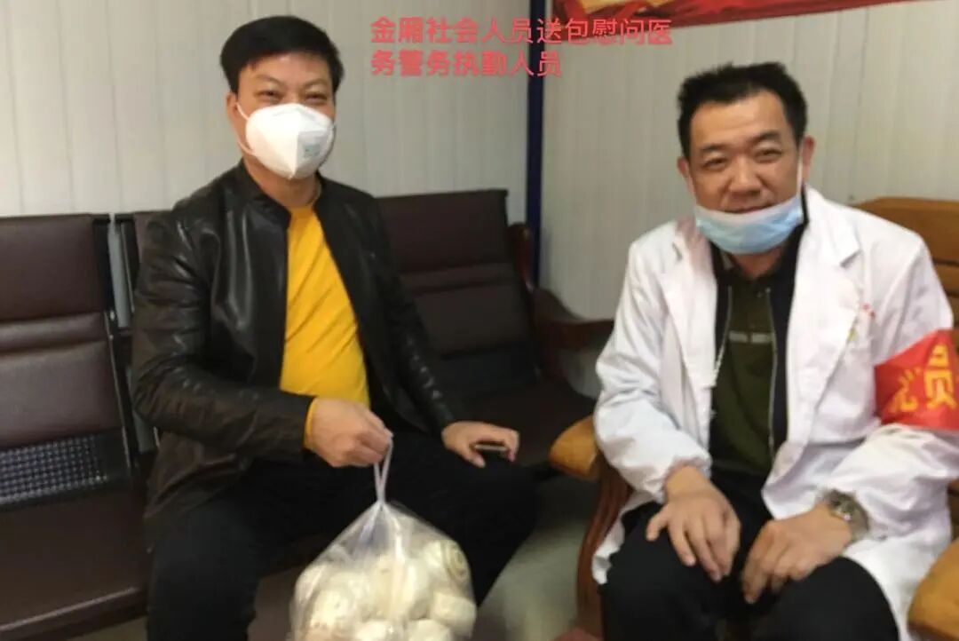 金厢热心人士到执勤卡口送包点慰问医务和警务执勤人员。
