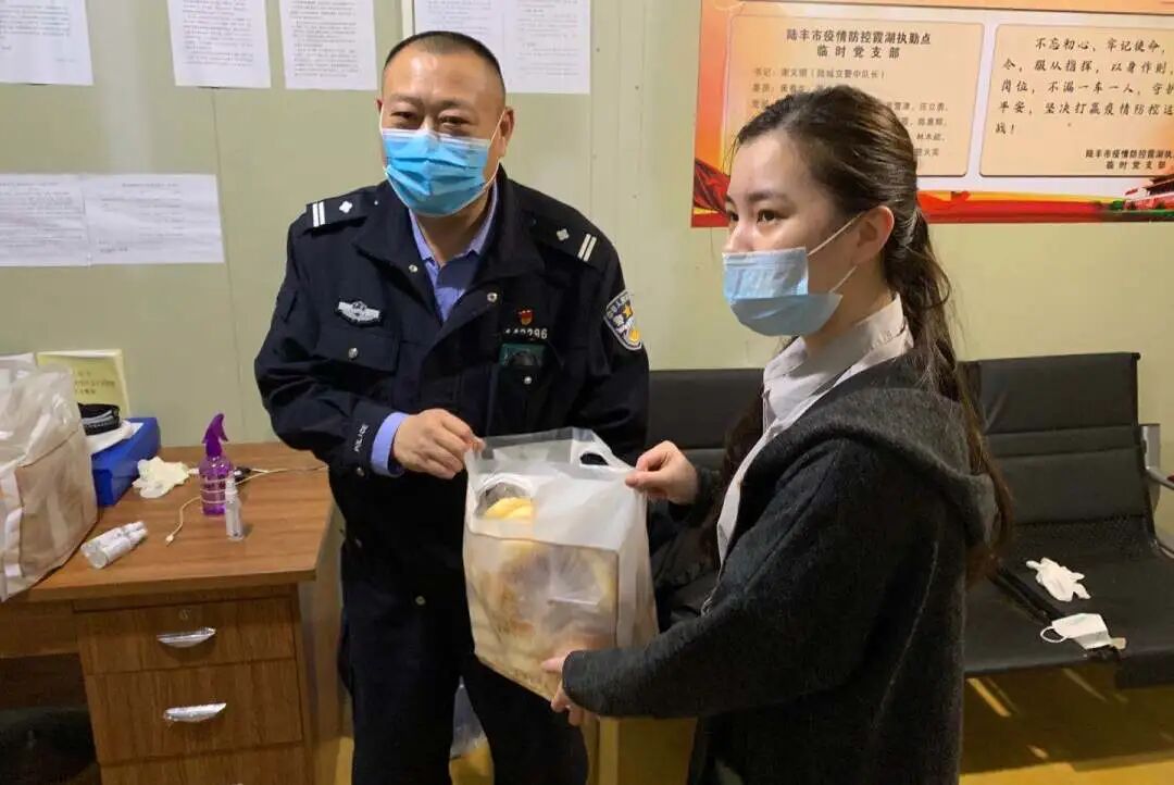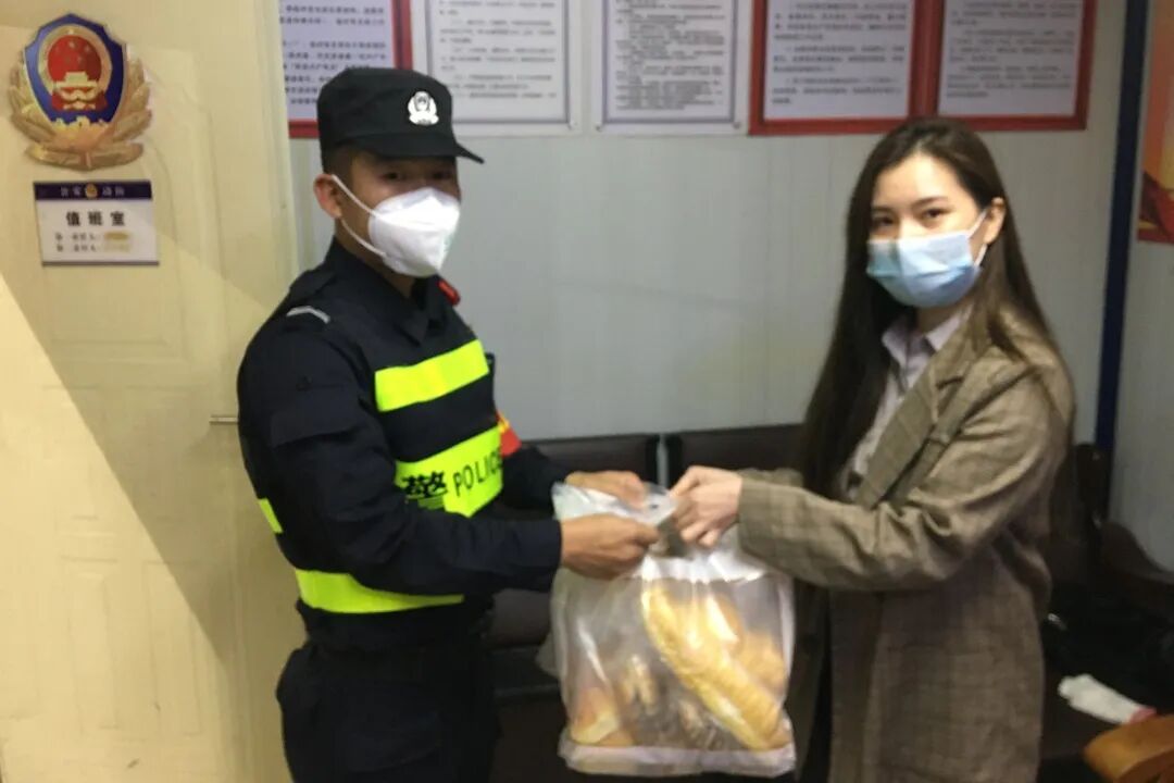 东海“幸福百分百”面包店热心人士多次前往东海霞湖、金厢山门卡口向执勤人员赠送面包及饮料。