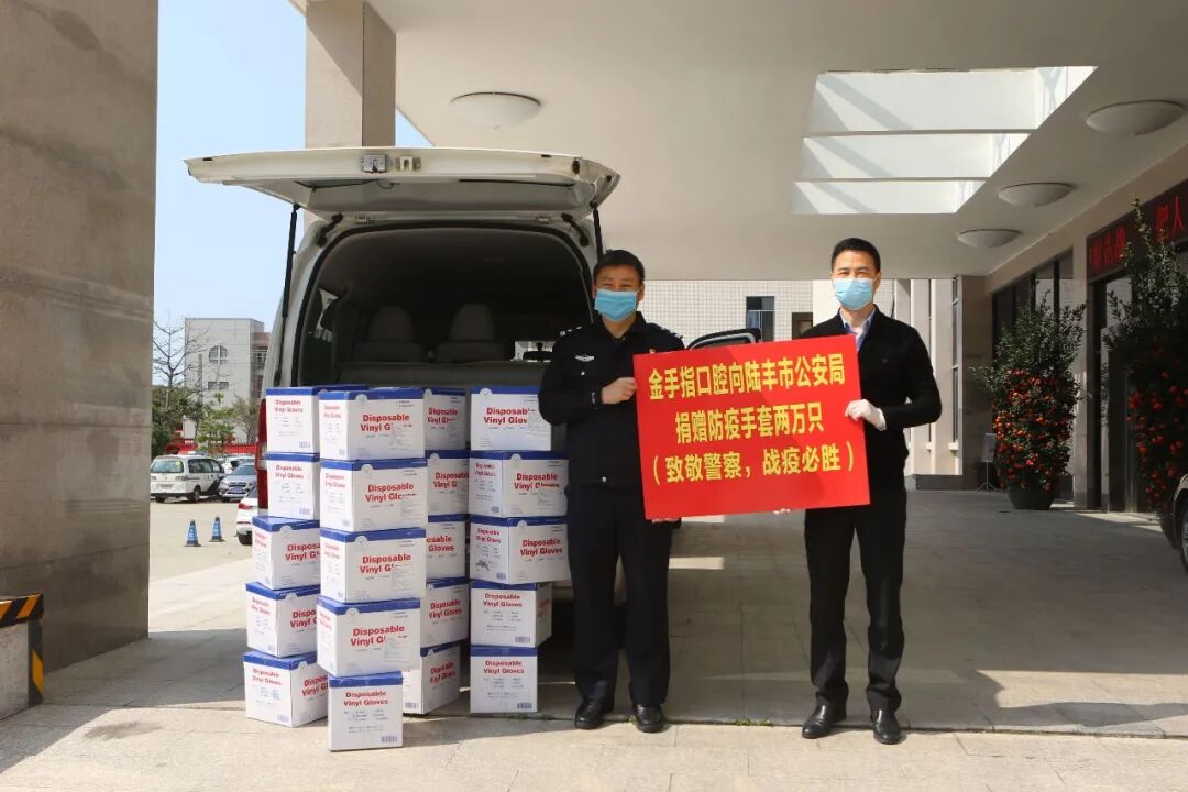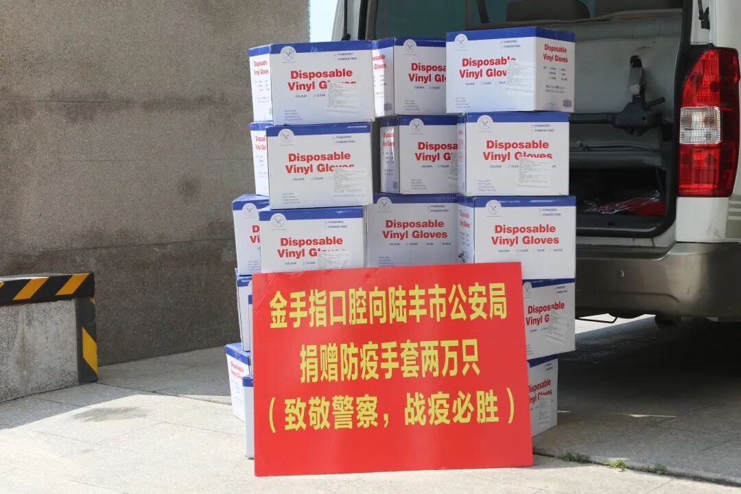 2月17日,金手指口腔前来市公安局捐赠防疫手套两万只。“致敬警察,站疫必胜”的鼓舞口号振奋人心。