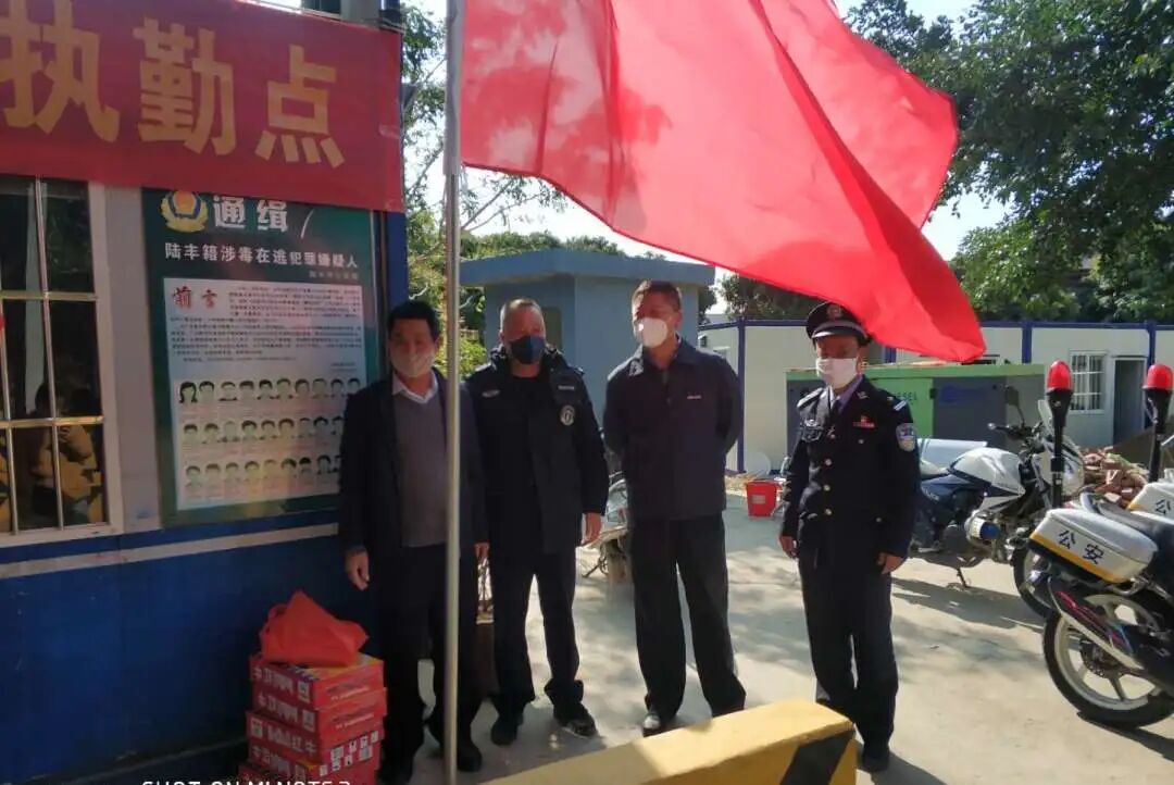 碣石热心人士到金厢山门卡口慰问,为执勤人员送来饮料及速食面等物品。