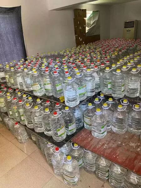 近日,上海浦东分局惠南派出所民警根据群众举报,在惠南镇广衍路某居民房内,当场查获75%纯度的桶装(5L)消毒酒精1725桶。