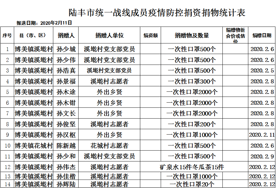 现将爱心人士向溪墘村委会进行物资捐赠情况