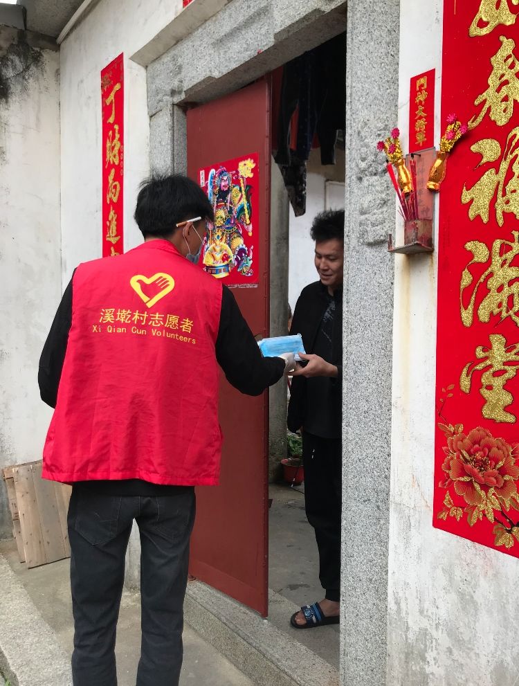 2020.02.13上午口罩的发放工作中,驻村镇领导陈其国同志要求, 要确保不漏一户,本村或暂住同样对待等等,使工作有序进行。溪墘村志愿者在溪墘村书记,主任,两委干部及理事会的指导下,统筹分配口罩,按户人口发放到位。