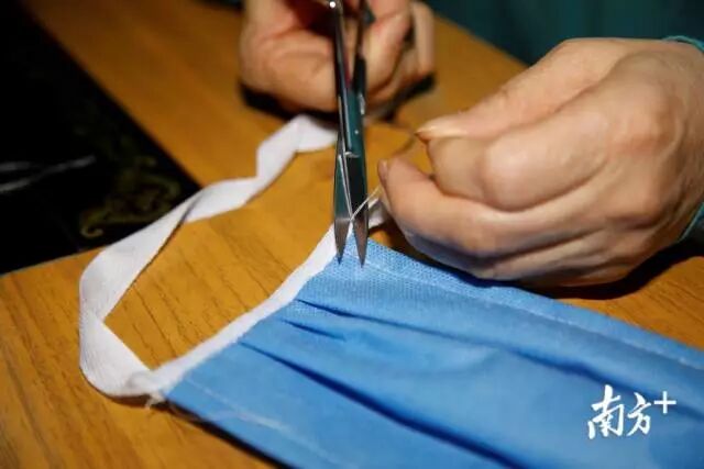 大家最关心的问题想必便是普通人能否自己自制口罩。中山六院消毒供应室解释,其使用的无纺布来源于器械打包的无纺布,本来这种无纺布就由三层结构组成,S层,M层,S层,其中M层有阻菌作用,为了更方便佩戴和舒适,消毒供应室在口罩最里面加了双层纱块。如果有合适材料,普通人也可以自己做。