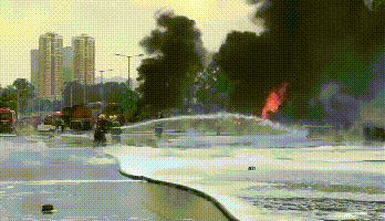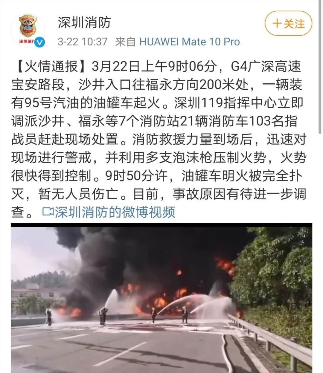 深圳119指挥中心立即调派沙井、福永等7个消防站21辆消防车103名指战员赶赴现场处置。