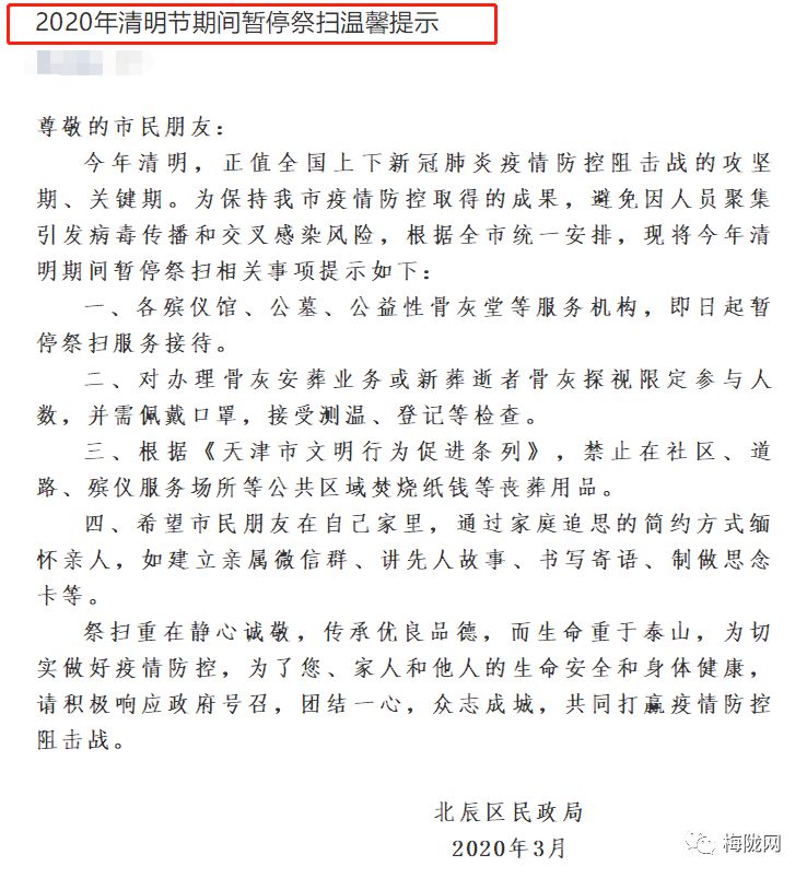 5.暂停一切祭扫活动的解除时间以上级疫情防控指挥部通知为准。