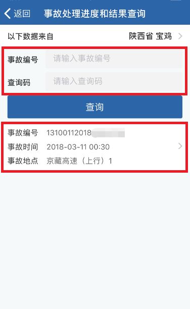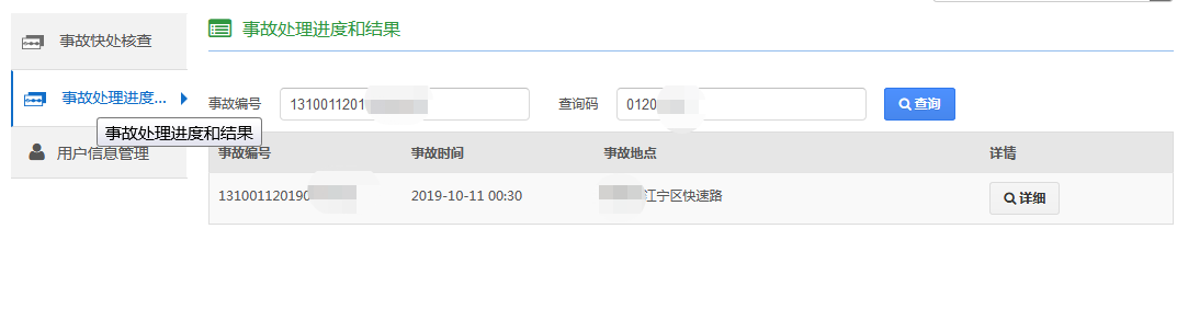 1、在“事故处理进度和结果”页面输入事故编号和查询码: