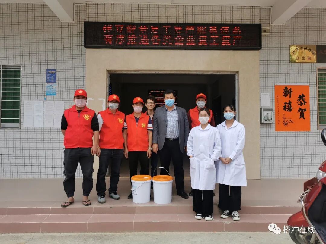 据了解,本次活动为桥冲镇10个村委会、9所小学、2所中学、1所幼儿园、镇卫生院、派出所、镇政府和一个宗教场所送去了消毒液、口罩垫和喷洒水箱等抗疫物资。