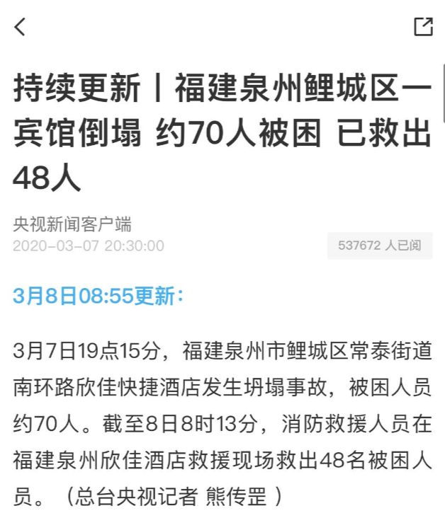 泉州坍塌酒店公共画面曝光