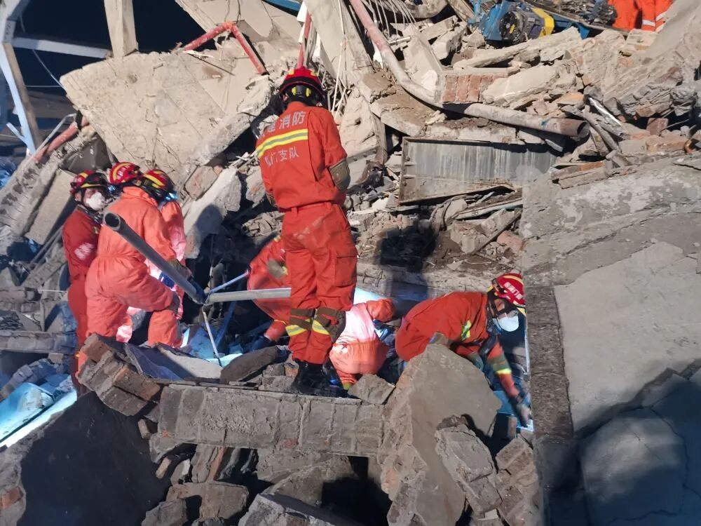 目前,现场消防救援力量共计169辆消防车(含47套生命探测装置)、848名指战员、7犬。