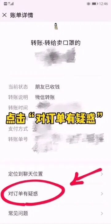 ②找到对应的支付账单→对订单有疑惑→被骗投诉