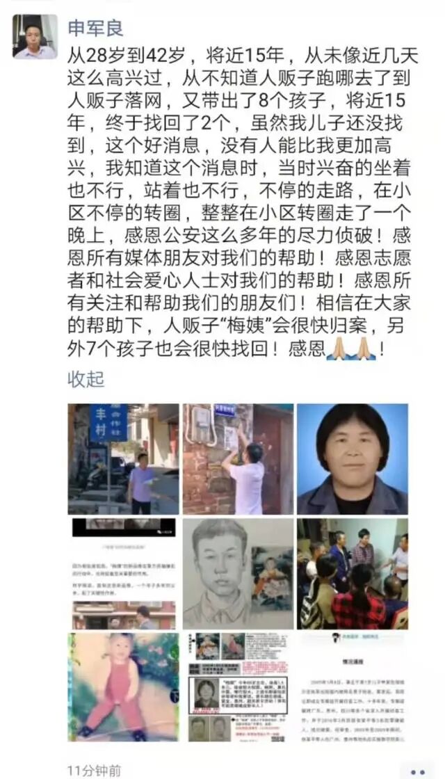 近15年过去了,申军良一直没有放弃找回儿子。除了继续找儿子,他表示,还要根据“梅姨”新的特征,沿着她的轨迹行踪,再进行更仔细地寻找。