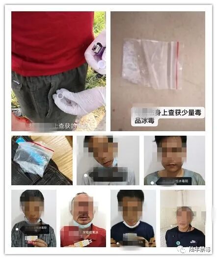 3月27日12时30分,陆丰市公安局“2.19”专案组联合桥冲派出所、博美派出所,在桥冲镇抓获涉毒人员:林某杰(男,35岁,桥冲镇人),后经深挖,于当天下午3时许,在博美镇霞绕村一养殖场捣毁一个吸毒窝点,抓获林某杰供毒上家林某强(男,45岁,博美镇人)及吸毒人员林某彬(男,28岁,博美镇人)、林某冰(男,44岁,博美镇人),郑某(男,55岁,内湖镇人)、林某群(男,57岁,博美镇人)等5人,现场查获吸毒工具一批及少量毒品冰毒。