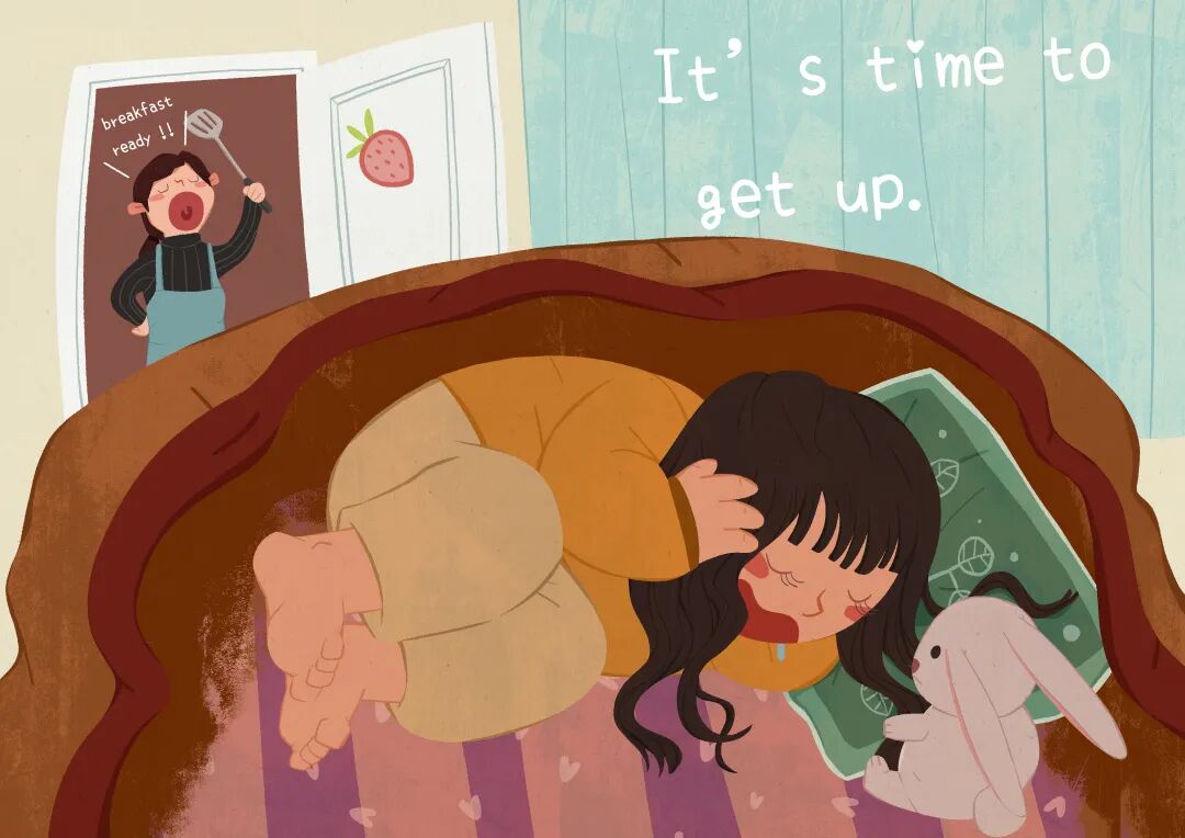 很多父母会采取隔5分钟就叫孩子一次的方法,看似让孩子有时间做起床准备,其实是在不断地打断孩子清醒,这样反而越叫越难醒。