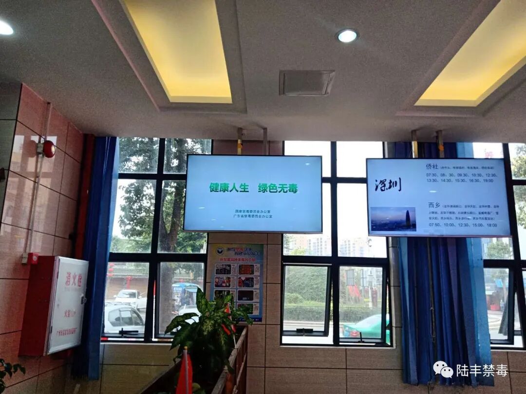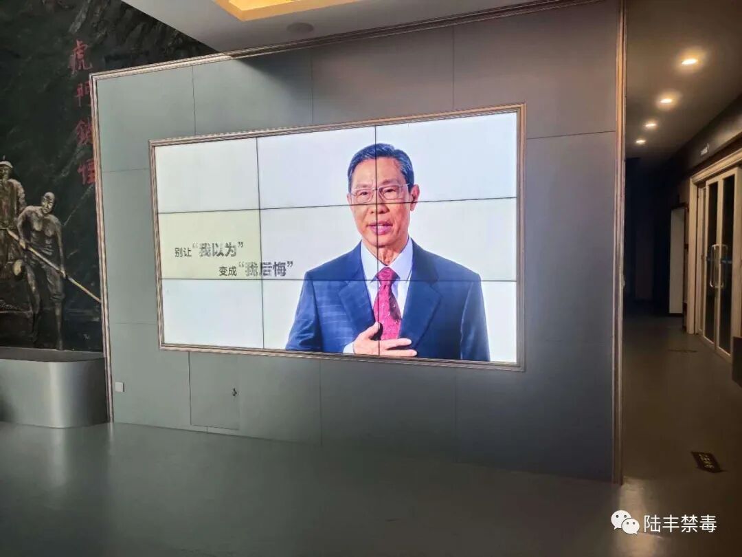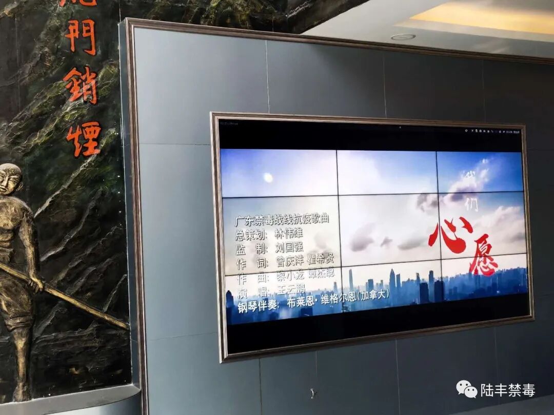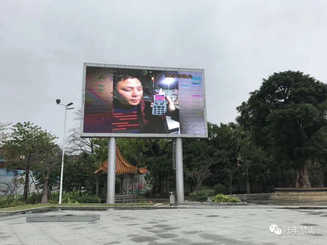 禁毒人在做好科学防控的同时,积极推动企业复工复产,各地各个村(社、区)打造禁毒宣传“无死角”。充分发挥户外电子屏“无接触”宣传优势,让钟南山院士的禁毒宣传公益片、陆丰禁毒宣传片等在陆丰各地主要路段的多个户外电子屏之外,还在公园、医院、广场、社区等都可以看到滚动播放的禁毒宣传公益短片。