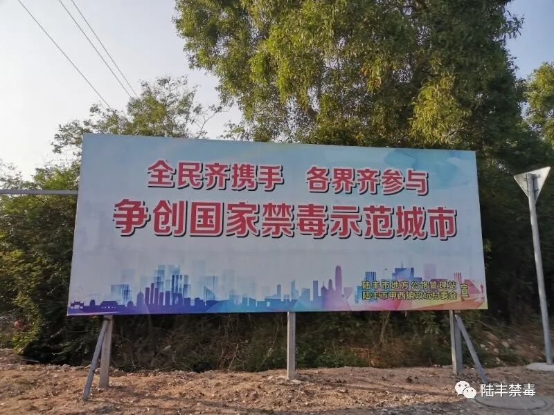 全市主要道路的固定大型广告牌、路灯旗、横幅等不断增加和更新内容,特别在进入“三甲地区”的禁毒宣传大道内南甲公路,沿途随处可见,让每个通过这条路线进出的三甲群众都能受到深刻的禁毒教育,各村社区在主要人流活动场所和主要村口都安装设置了大大小小的禁毒示范创建宣传牌、宣传栏、横幅标语等。
