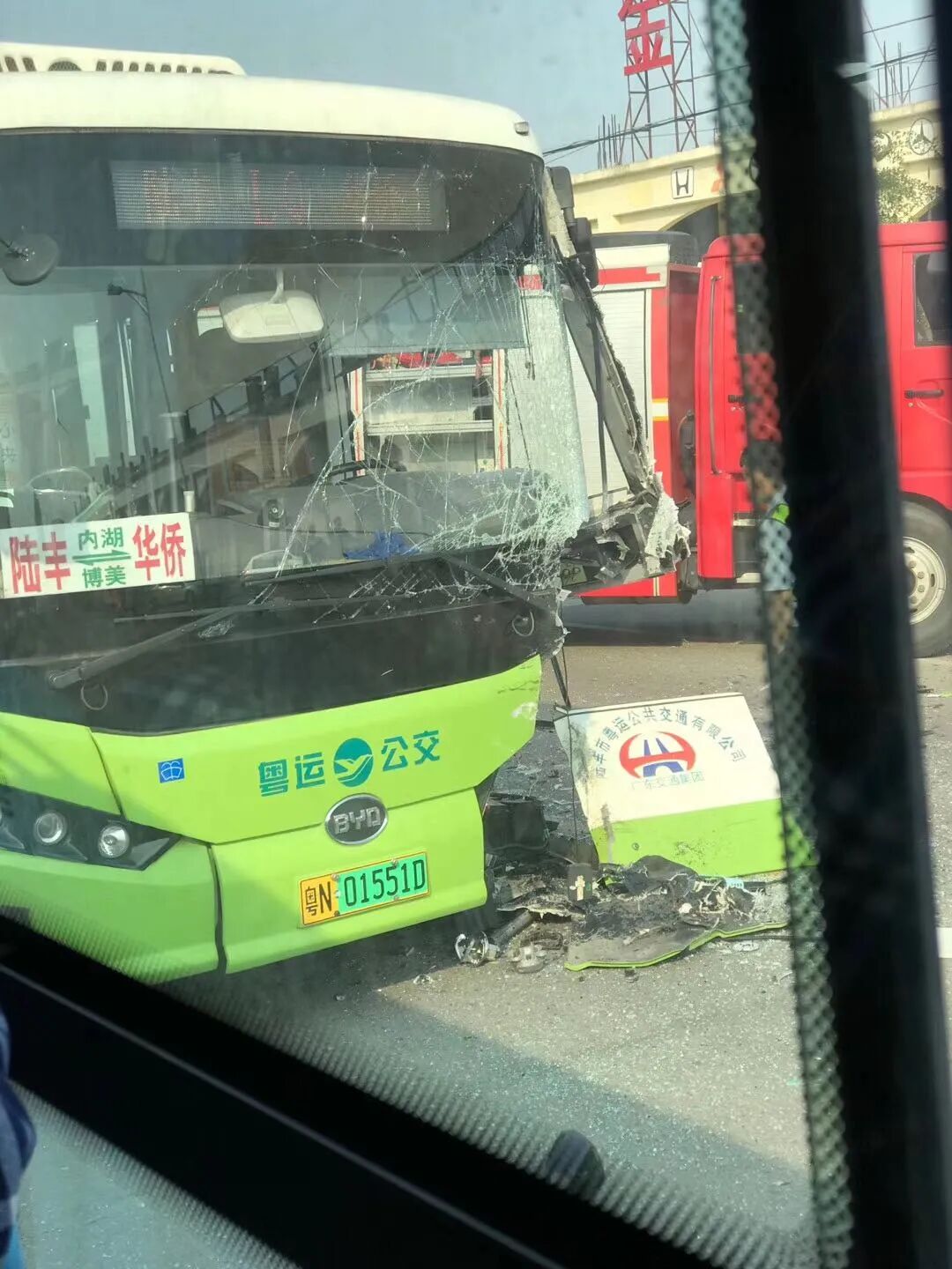 今天(2020.04.27)下午4点多钟,在陆丰市博美镇图美村委会马山村广汕公路附近路段,发生一起交通事故,一辆黑色小车与一辆公交车发生碰撞,小车车头严重受损,小车安全气囊已弹出,闻讯而来的群众合力试图救出车内人员,公交车车头受损,车门脱落,交警与消防员到场处置,伤者被救出后送往医院,事故原因不详,详情请以交警部门发布为准!