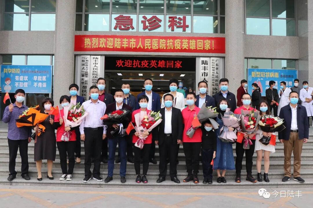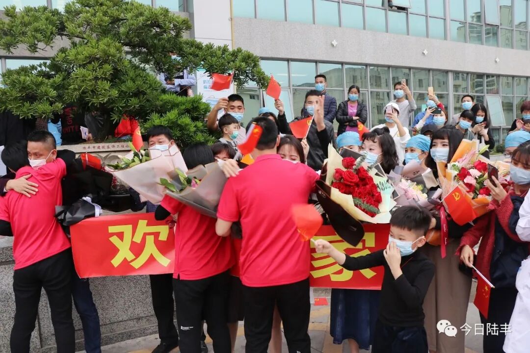 在武汉疫情最为严峻之际,由陆丰市人民医院的林俊锋、黄婷婷、刘建平、温宏慧4人组成的陆丰首批支援湖北的医疗团队,他们进驻条件艰苦的病区,日夜守护武汉患者。如今,武汉的樱花开了,逆行的英雄们平安凯旋。作为陆丰的英雄,他们值得我们用最高的礼遇说一声:“你们辛苦了!欢迎你们回家!”![]()