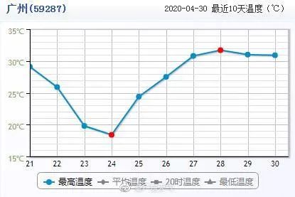 看看这道曲线,这周以来气温一直维持在高点,广东城市夏意渐浓。