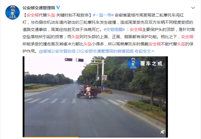 有关研究表明,正确佩戴安全头盔、规范使用安全带能够将交通事故死亡风险降低60%至70%。