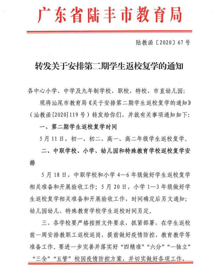 陆丰教育局最新通知!中小学返校复学具体安排…