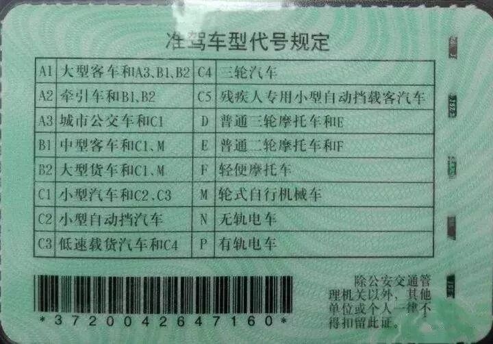 小编说:这样的理解是片面的,在驾驶证背面都印有准驾车型的代号规定。难道拿了A照就可以驾驶摩托车了吗?不可以!而且是绝对不可以!