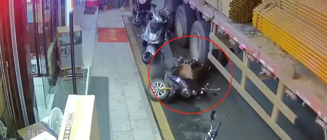 昨晚,在东海河边南堤路路段发生了这一幕,一辆大长挂车满载钢管进入了市区内,摩托车车来车往,很是危险,在行驶中,长挂车撞倒并碾压了一辆停靠在路边的摩托车车尾。还好撞到的不是行驶中的车,不然后果不堪设想。