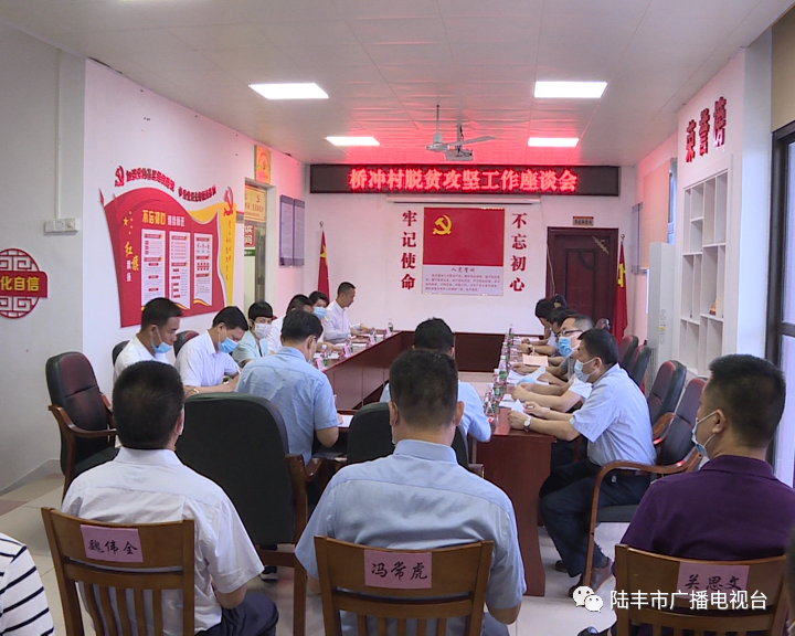 省出版集团党委书记、董事长谭君铁一行来到桥冲镇桥冲村后,与镇、村相关负责同志一起召开脱贫攻坚工作座谈会,听取了解驻村工作队和桥冲村有关脱贫攻坚工作情况汇报。