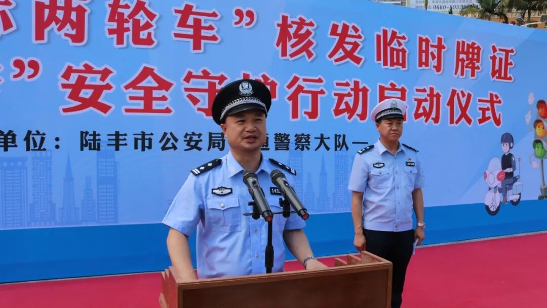 6月10日下午,陆丰市公安交警部门开展“违标两轮车”临时牌证核发暨“一盔一带”安全守护行动启动仪式。进一步提升驾乘人员的安全防护意识,普及佩戴安全头盔、安全带重要性的认识,规范我市“违标两轮车”临时过渡管理。