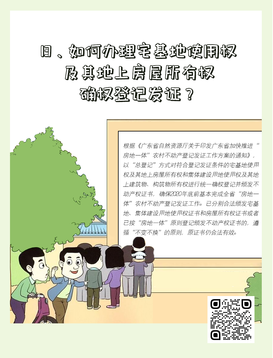 根据《广东省自然资源厅关于印发广东省加快推进“房地一体”农村不动产登记发证工作方案的通知》,以“总登记”方式对符合登记发证条件的宅基地使用权及其地上房屋所有权和集体建设用地使用权及其地上建筑物、构筑物所有权进行统一确权登记并颁发不动产权证书,确保2020年底前基本完成全省“房地一体”农村不动产登记发证工作。已分别合法颁发宅基地、集体建设用地使用权证书和房屋所有权证书或者已按“房地一体”原则登记颁发不动产权证书的,遵循“不变不换”的原则,原证书仍合法有效。