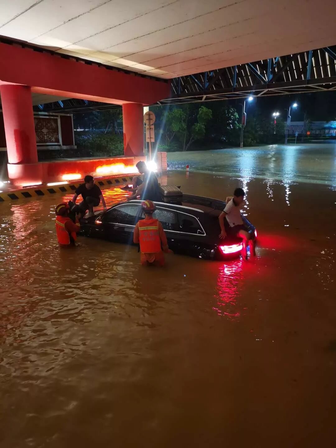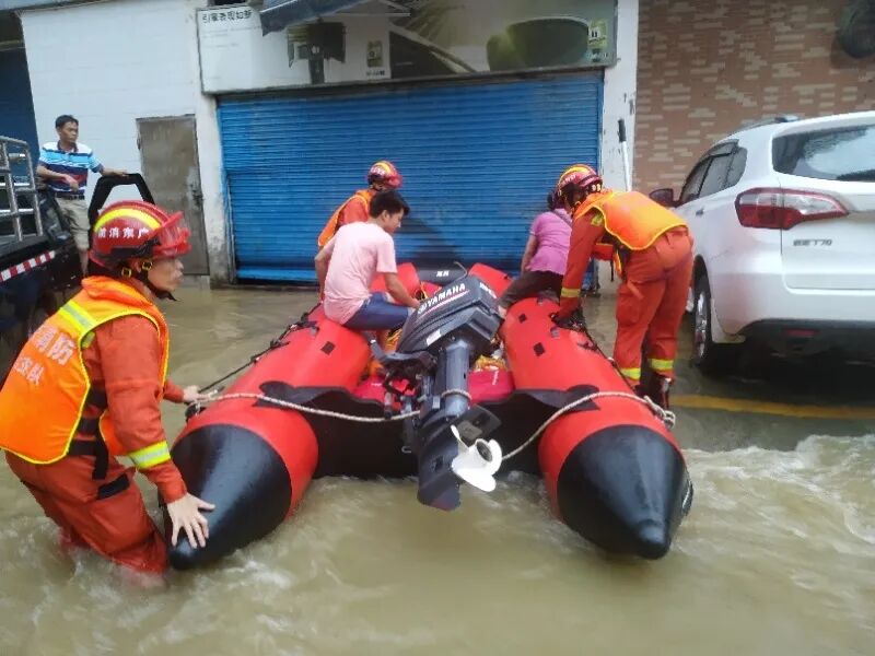 这是一个无法难忘的夜晚。天空下着暴雨,地面大量积水,环境黑暗,伸手不见十指。消防员们冒着暴雨,安抚群众的情绪,逐一进行排查。车辆能过的迅速奔赴现场,不能过的扶着舟艇、携带装备蹚水前进。在被水淹没的车里,在居民住宅楼里,甚至是路边田野里,采取背、抱、抬、扶的方式将被困群众从危险区域救出。