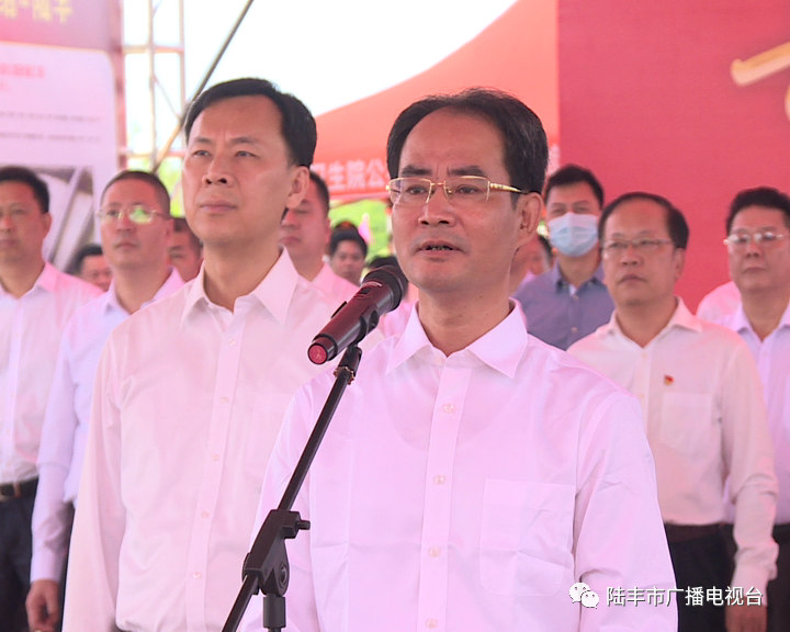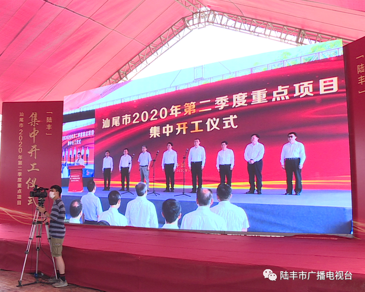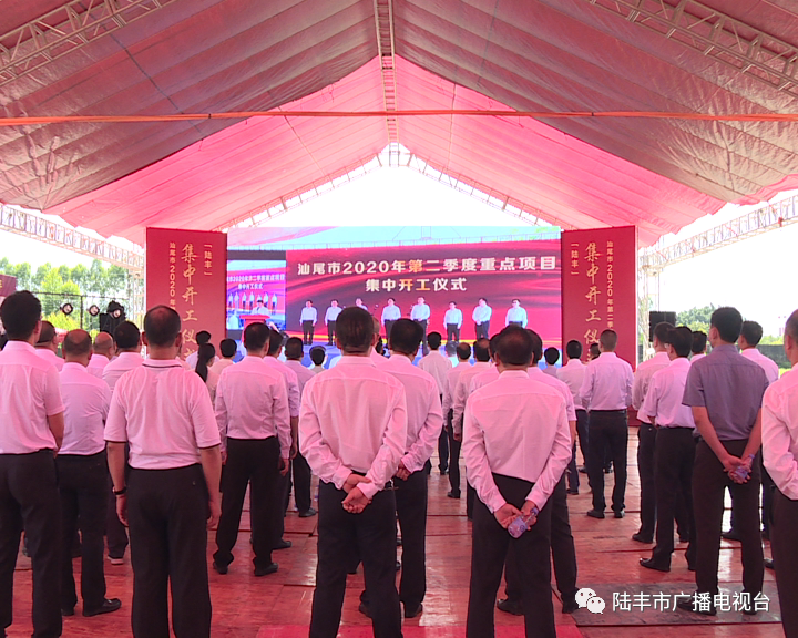 6月10日上午,汕尾市委市政府举行2020年第二季度重点项目集中开工仪式。我市在陆丰市整市推进生活污水处理设施建设PPP项目建设工地设立分会场。许伟明、彭薏菁等市领导,各镇(场、区)、市直有关单位主要负责人在陆丰分会场参加活动。