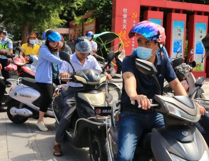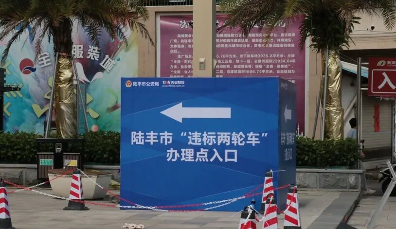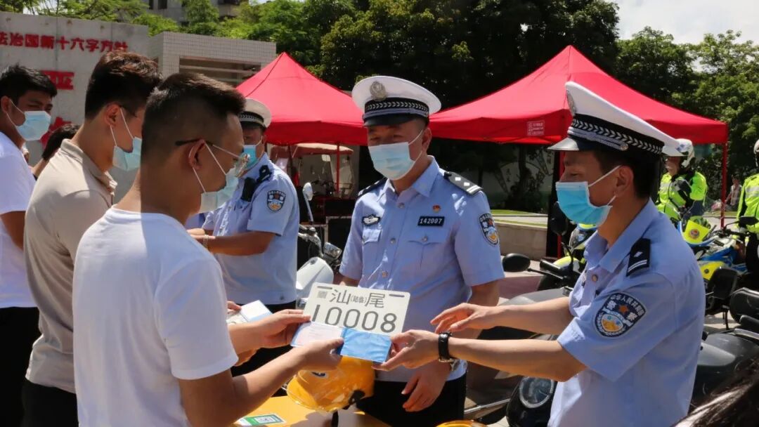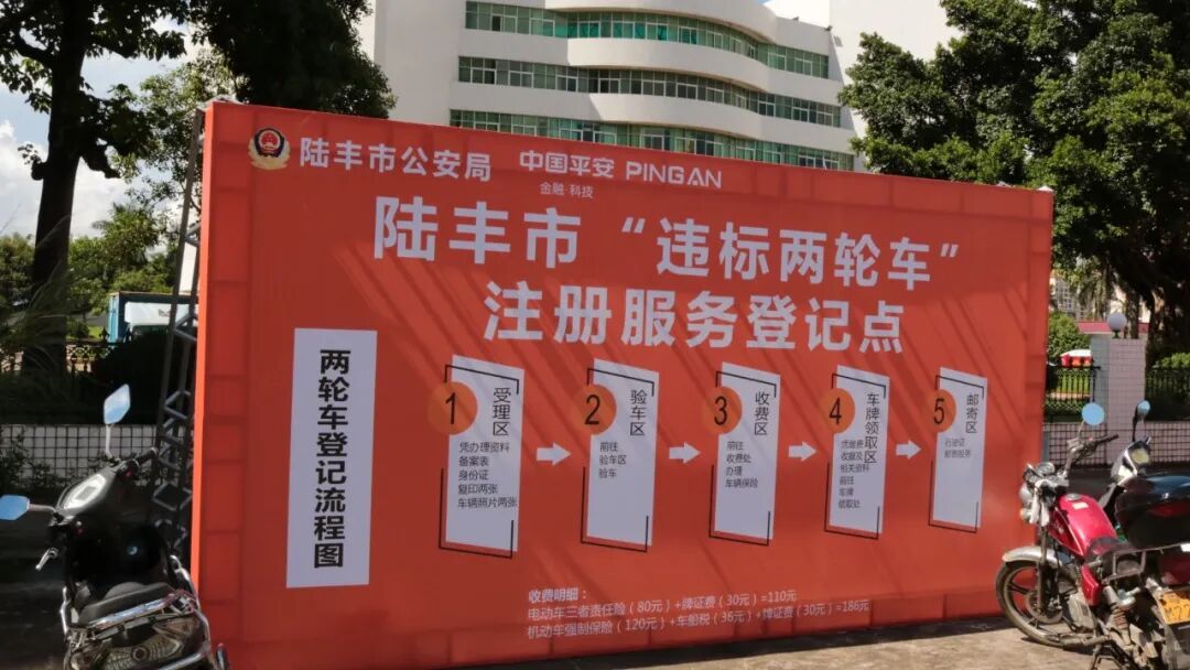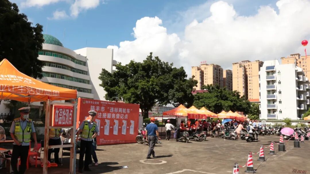 陆丰市开展“违标两轮车”临时牌证核发暨“一盔一带”安全守护行动启动仪式