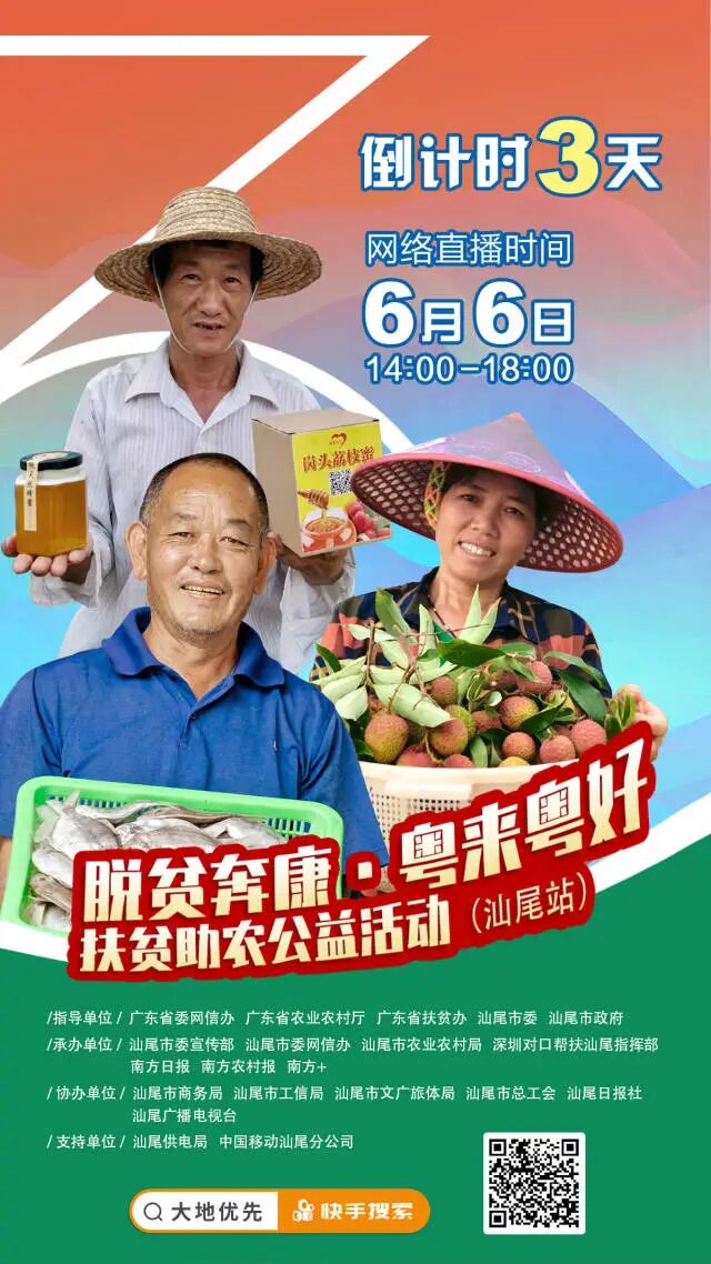 6月6日下午,汕尾市长逯峰将与市委分管领导,以及各县市区主官齐聚快手“大地优先”直播间(快手ID:1544121979),与各位网友“云鉴”汕尾马鲛丸、海丰油占米、虎噉金针菜、陆河青梅等地方优质特色农产品。