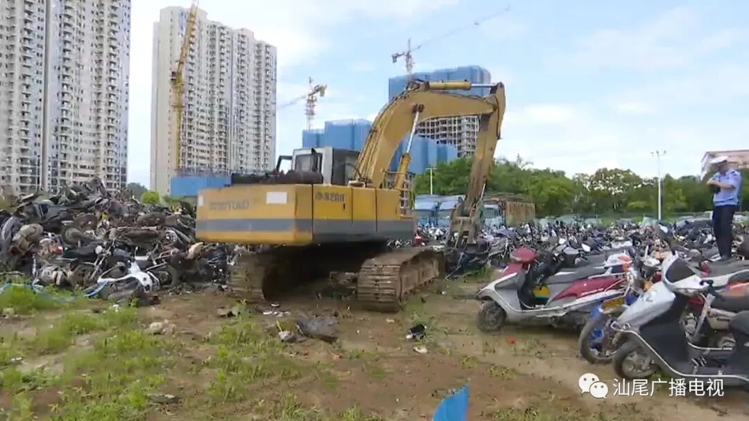 日前,汕尾市公安局交警支队市区二大队根据市局、支队及创文创卫的部署要求,持续开展市区交通秩序整治行动,在汕尾市公安局涉案车辆停车场公开销毁一批无牌无证机动车辆。